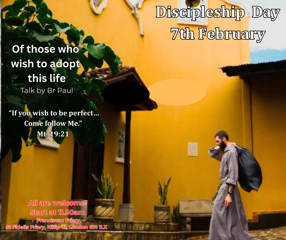 The Way of St Francis,| A day of prayer and fellowship, Reflection and Community. Discipleship Days include the rosary, Mass, lunch, talks, adoration, vespers and confessions.